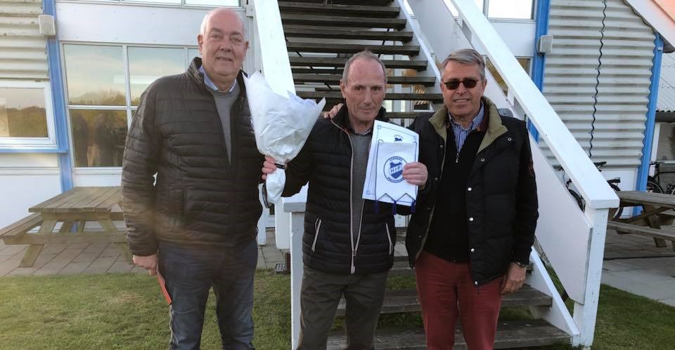 Det nye Æresmedlem i Hornbæk IF, Flemming Vindahl Andersen, flankeret af Peter Poulsen og Michael Sørensen.