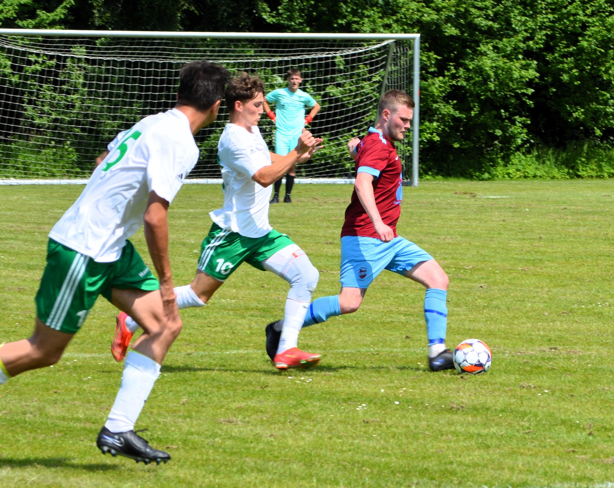 Emil "Mini" Stevns med bolden var kampens bedste spiller, da Hornbæk vandt med 3-2 over Slagslunde-Ganløse (Foto: Susanne Prahl)