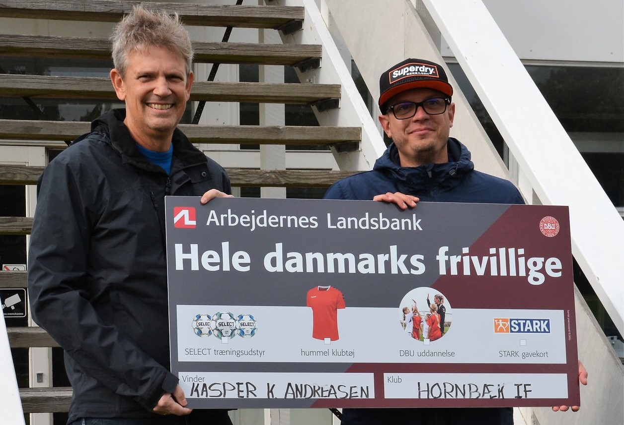 Ungdomsformand Kasper Andreasen blev hædret som en af "Hele Danmarks Frivillige" lørdag eftermiddag i forbindelse med lokalopgøret mellem Hornbæk og Hellebæk.