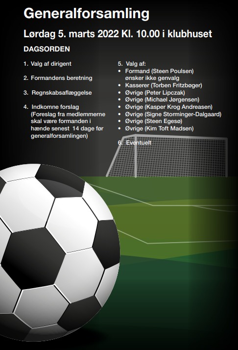 Generalforsamling i klubhuset lørdag 5. marts kl. 10.00