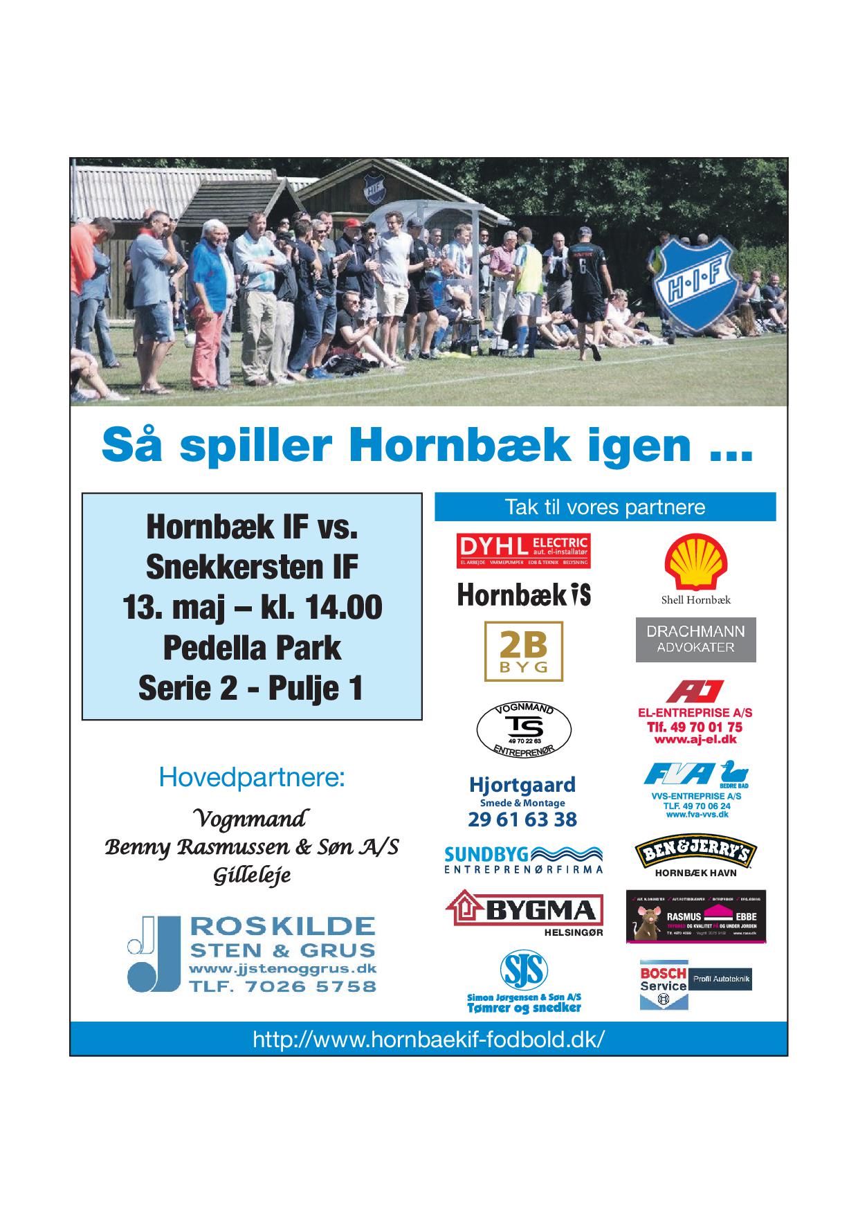 Det er i dag rækkens absolutte tophold der gæster Hornbæk. Snekkersten ser ud til at have direkte kurs mod serie 1. Også Snekkerstens 2. hold ser ud til at skulle rykke op i serie 3 – så det vidner om en stærk senior trup med stort potentiale.