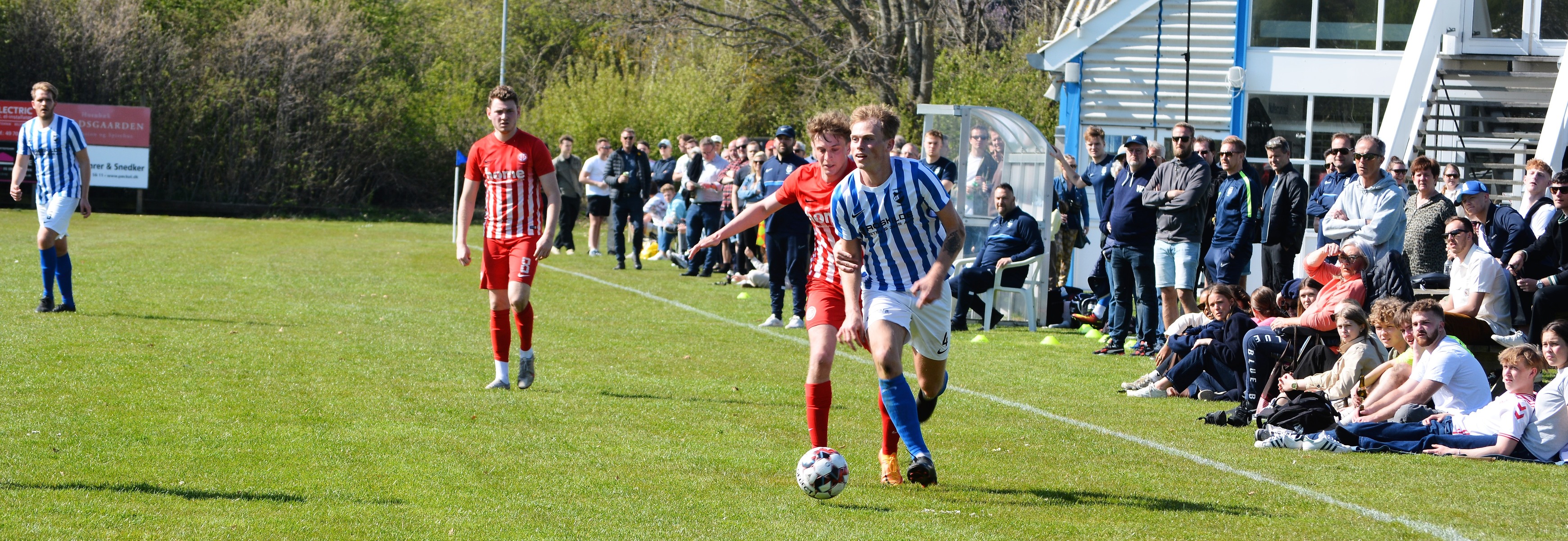Der var trængsel på sidelinjen i det herlige forårsvejr, og man skulle kun vente i yderligere syv minutter, for der atter skete noget på måltavlen. Det fine opspil kom fra Sebastian Hayn, der sendte Lukas Svendsen afsted på venstrekanten. Svendsens afslutning fra distancen blev pareret af Espergærde-keeper Villads Bay Christensen, og så var topscorer Rasmus Dines hurtig over riposten og bragte Hornbæk på 3-2.