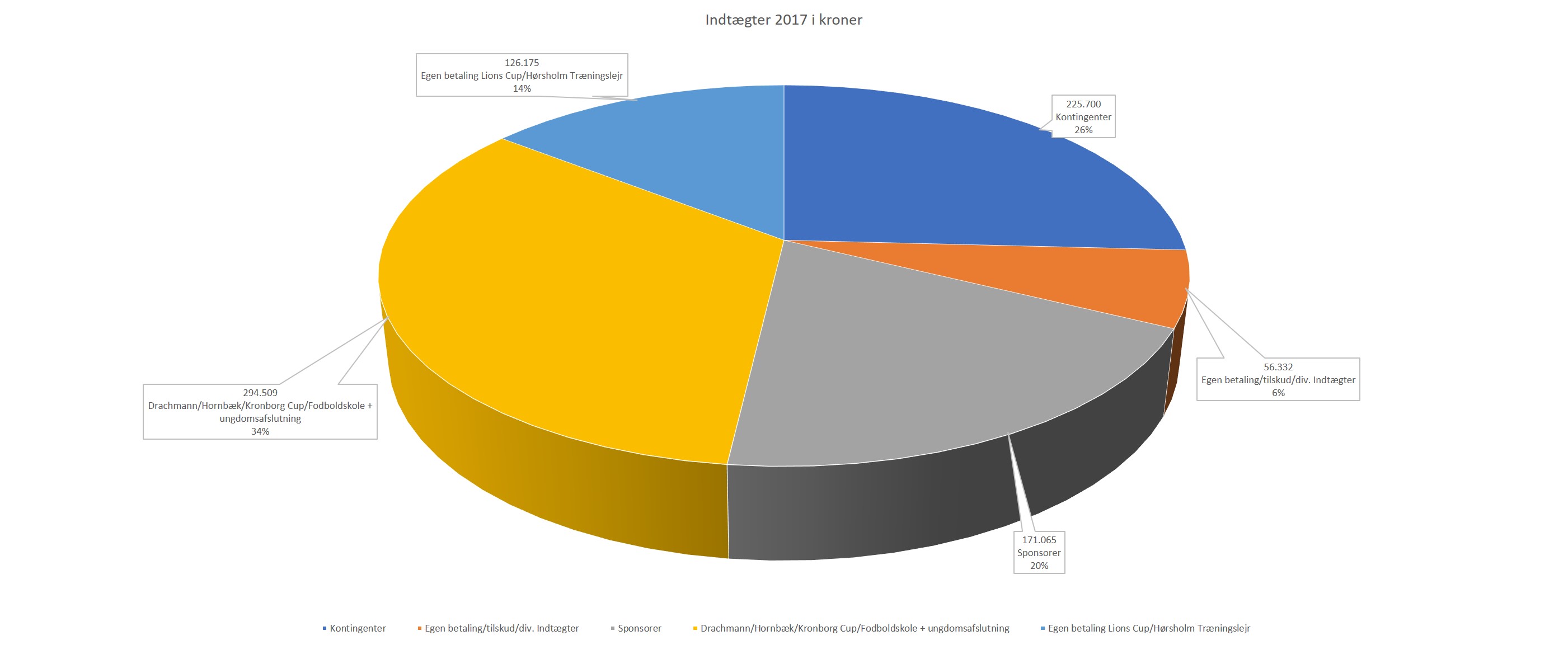 Kontingenter er kun 26% af vores indtægter. Hvorimod vores sponsor-aktivitet og vores Cup's og fodboldskole står for over 50%.