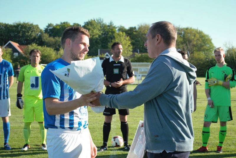 Både bane og vejr var nærmest perfekt, og de mange tilskuere kunne hylde Shawn Engvej inden kampen, der modtog gaver og hyldest for sine første 250 kampe på Hornbæks førstehold.