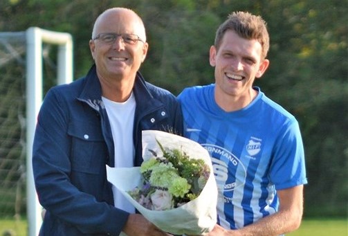 Mikael Juellund-Sørensen blev fejret for sin første 250 kampe på førsteholdet i forbindelse med hjemmekampen mod Fredensborg.
