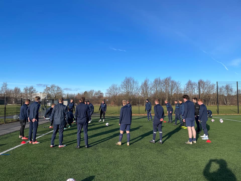 Solen skinnede da seniorspillerne var samlet til årets første træning.