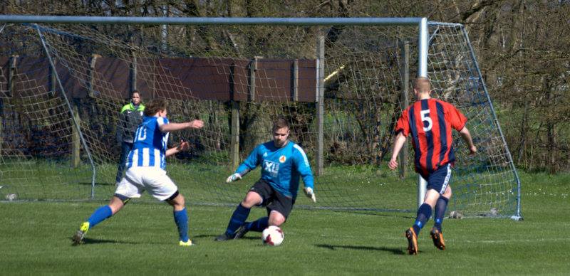 Værløses keeper, Rasmus Eilertsen, begik straffespark mod samme Ruberg, der slap fri da han opsnappede et skidt indkast fra en Værløsespiller. Straffesparket blev stensikkert sat ind af Casper Porsgaard. Kampens dommer uddelte samtidig et rødt kort til gæsternes keeper, og det virkede som en lidt for hård dom.
