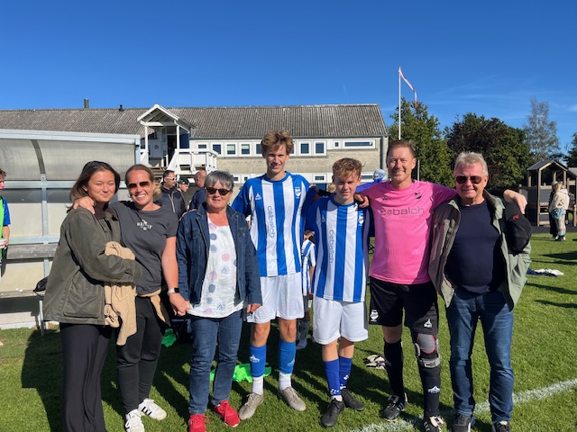 På sidelinjen kunne Kirsten og Peter Storminger se svigersønnen Søren samt de to børnebørn, Bertram og Sofus, i aktion på samme hold. Efter et sent afbud trådte Søren til som målmand på senior 2 og blev dermed holdkammerat med sine to sønner. På billedet ses udover de tre aktører også Ella (Bertrams kæreste), Kirsten og Peter samt datter, mor, kone, næstformand og kvinden bag det hele, Signe Storminger. De nød alle sejren.